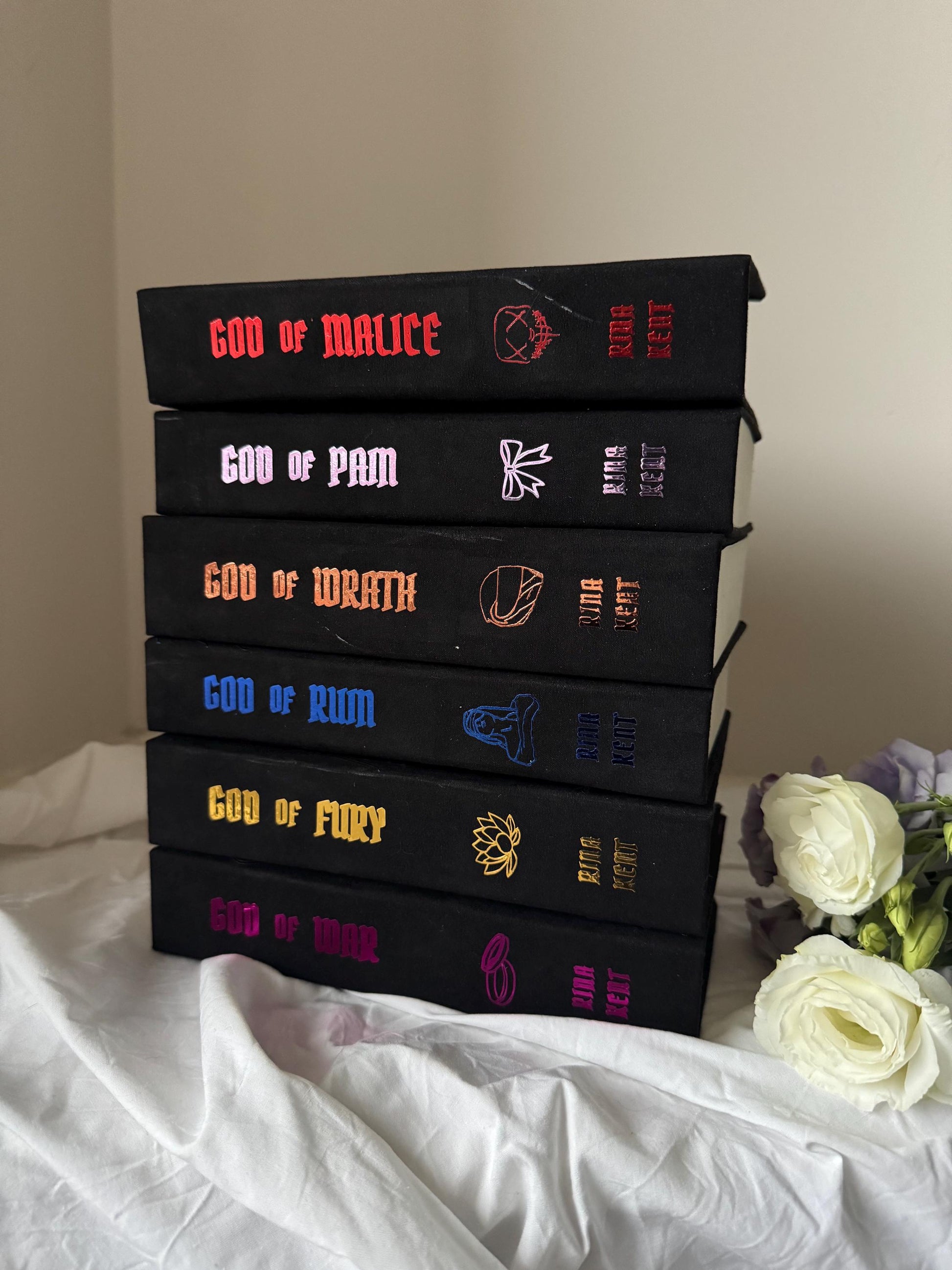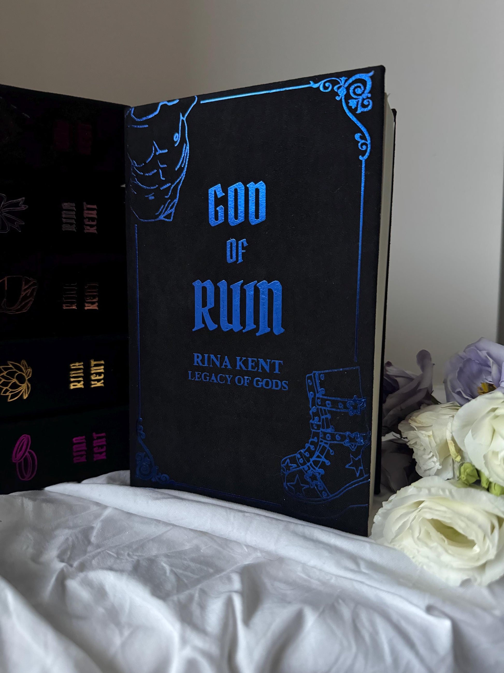 Special edition rebind of Rina Kents bestselling series Legacy of Gods featuring iconic imagery and a quote on back.
