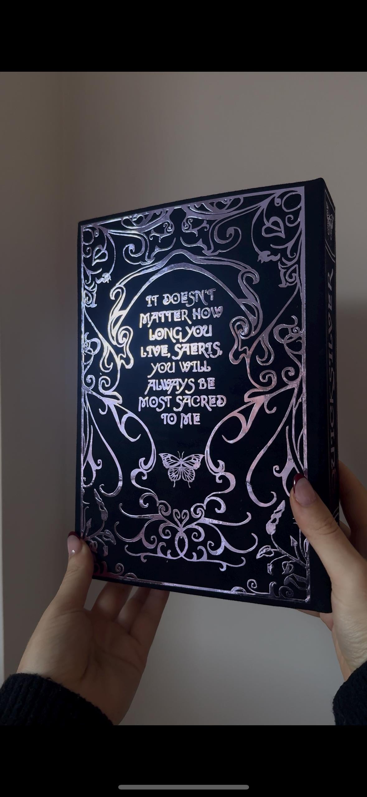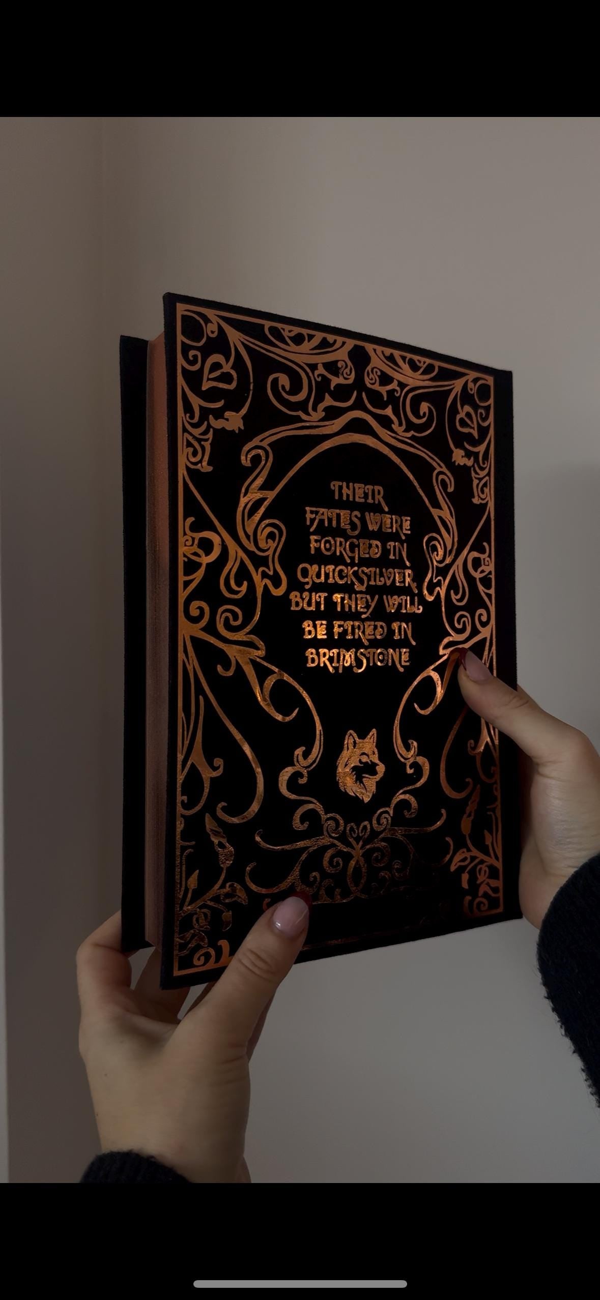 Special edition rebind of Callie Harts bestselling Quicksilver and Brimstone featuring iconic imagery and a quote on back.